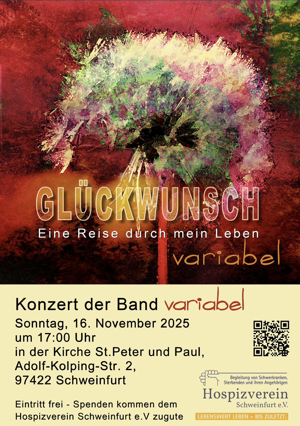 Infos im Hospizbüro: 09721 533 1150 oder koordination(at)hospizverein-Schweinfurt.de
